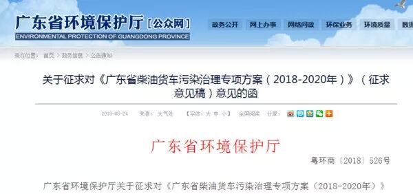 5月24日,《广东省柴油货车污染治理专项方案(2018~2020年)(征求意见稿)》开始公示,将对柴油货车污染治理出大招。