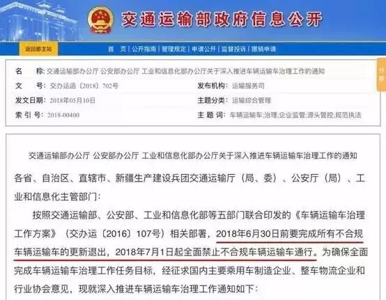 按照《车辆运输车治理工作方案》要求,在2018年6月30日前,全面完成所有不合规车辆运输车的更新改造。从2018年7月1日起,全面禁止不合规车辆运输车通行,符合《汽车、挂车及汽车列车外廓尺寸、轴荷及质量限值》(GB1589-2016)要求的标准化车辆运输车比重达到100%。